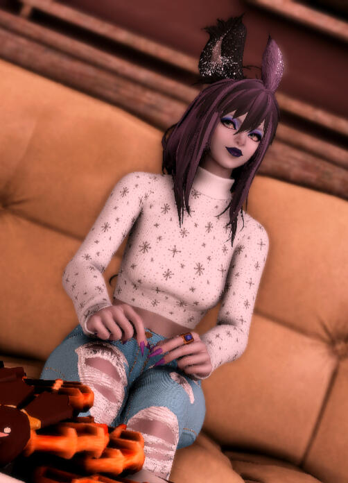 | ears. | two toned. left is purple, right is white. (it used to be grey, but something in her lore caused it to turn white) |